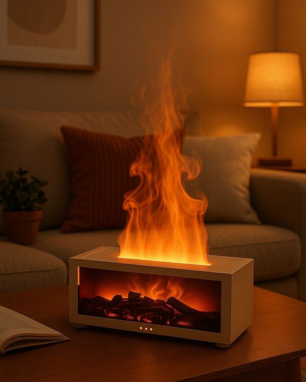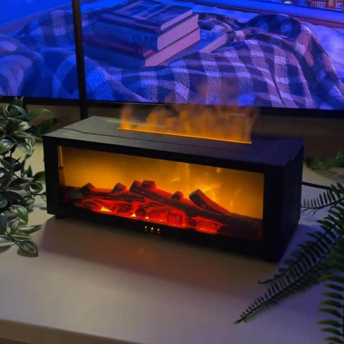 A párafelhő és a LED fény együtt olyan, mintha igazi tűz égne.